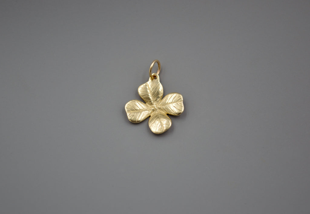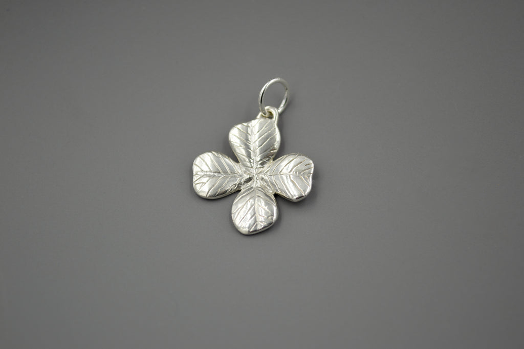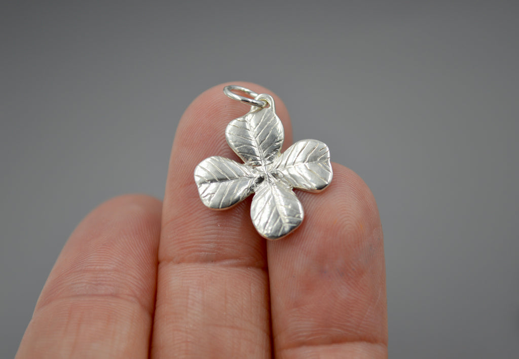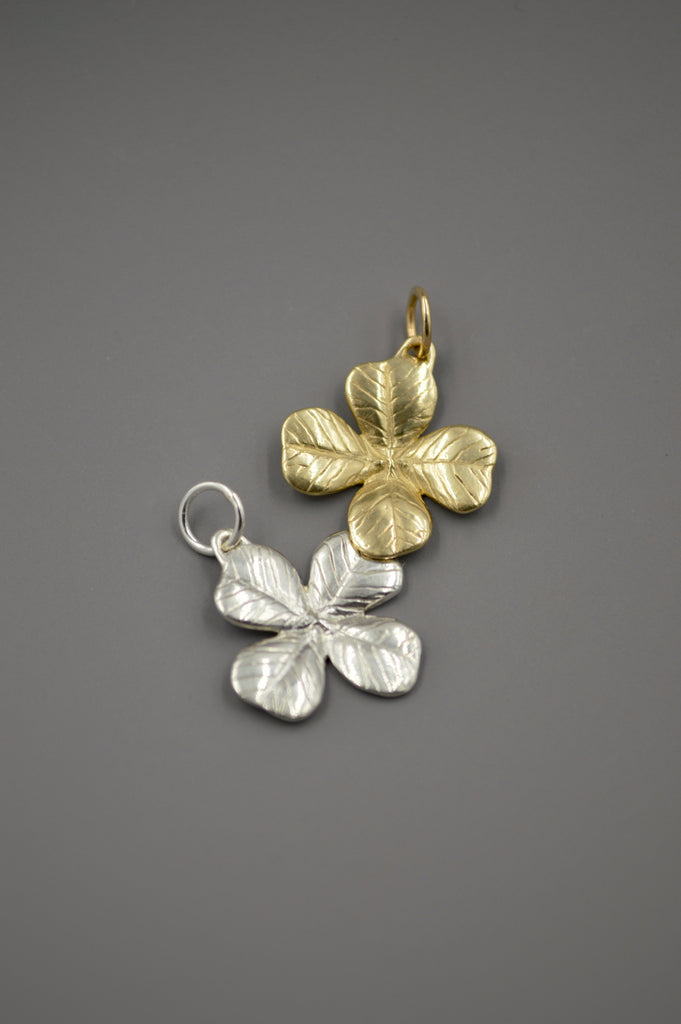 A good luck talisman to wear around your neck! This four leaf clover was hand carved in wax and then cast into solid metal. It is slightly concave for a real three dimensional feel.