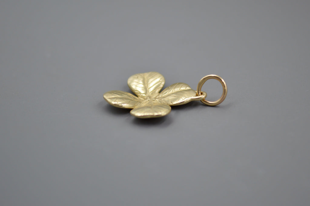 Four leaf clover with jump ring bail is about 23mm long, 16.5mm wide. Jump ring has 4mm opening.