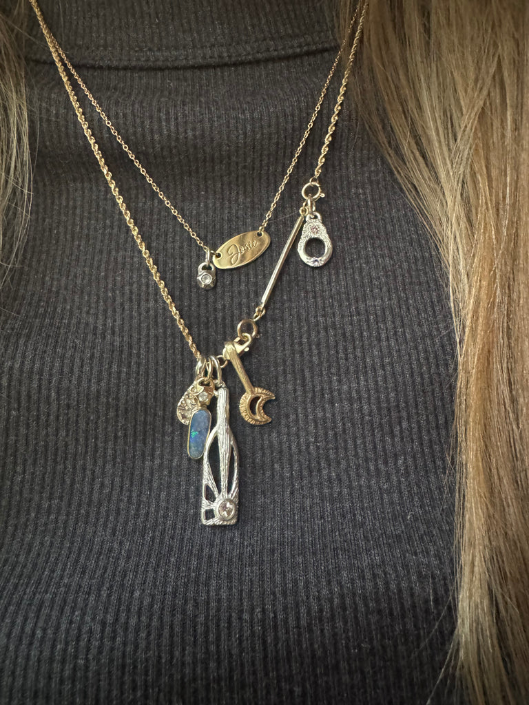 The new Light in the Dark charm. This design was made years ago but has been updated with a charm bail that can slip onto most chains, as well as a new stone combo option.