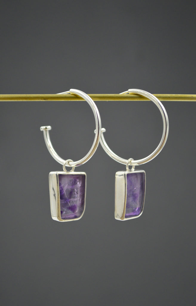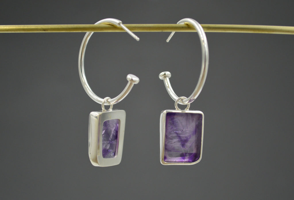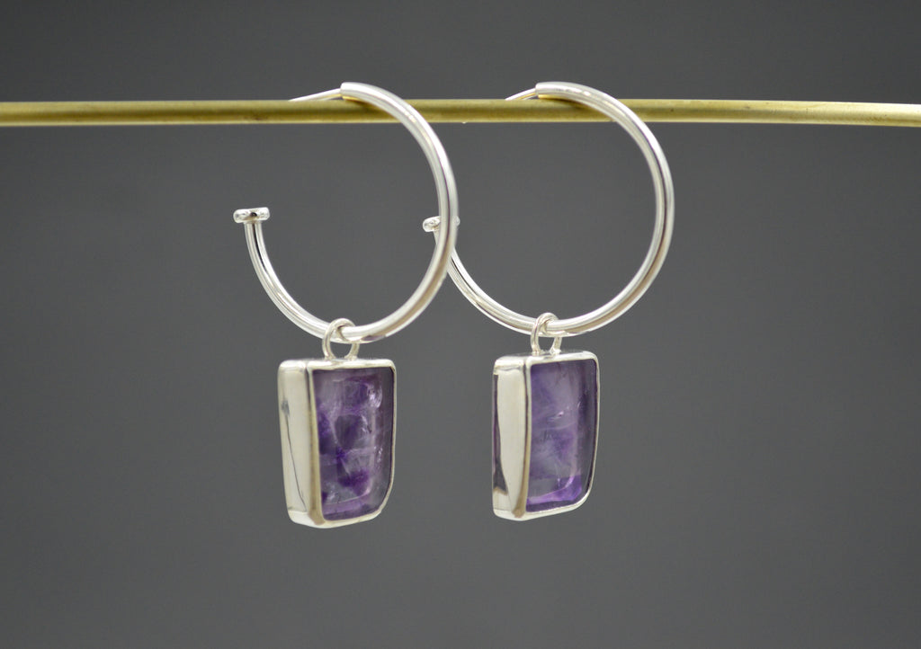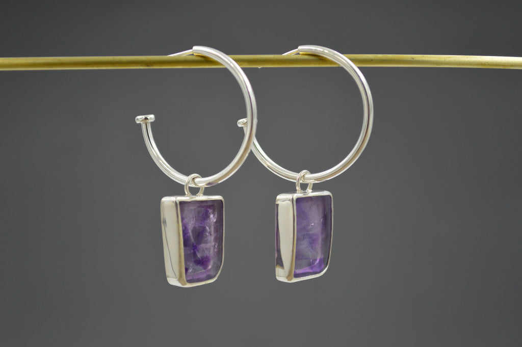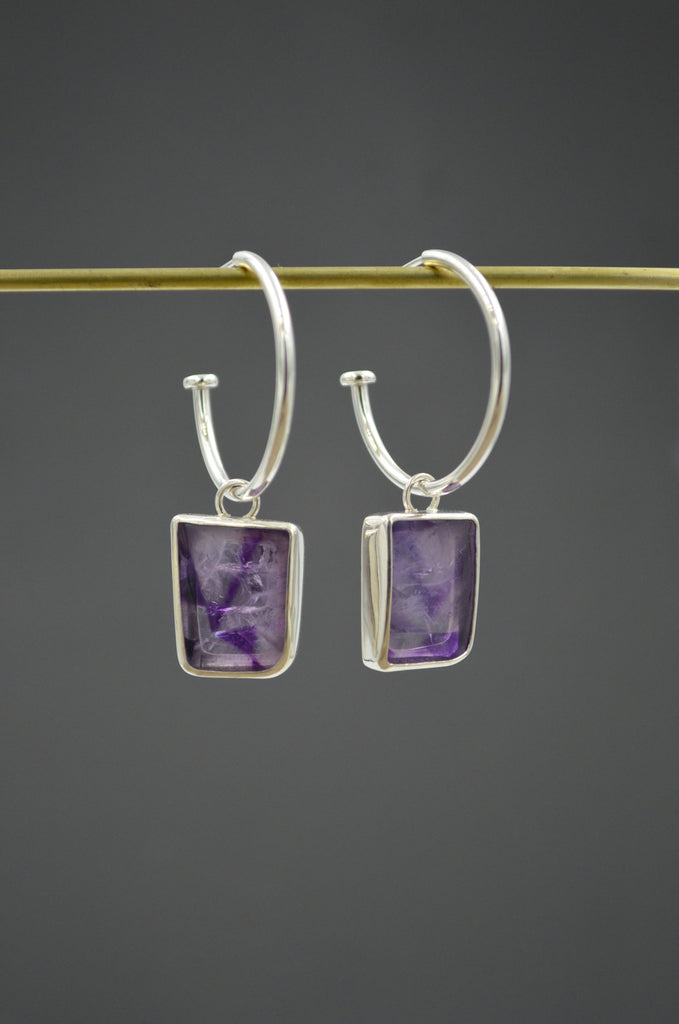 Silver Rectangular-ish Amethyst Hoops OOAK