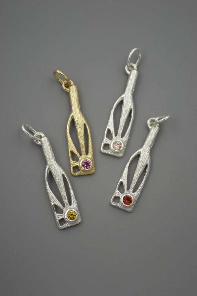 Materials: All sterling silver or all 14k yellow gold. Our caster uses recycled metals. Available with the following natural gemstones:
