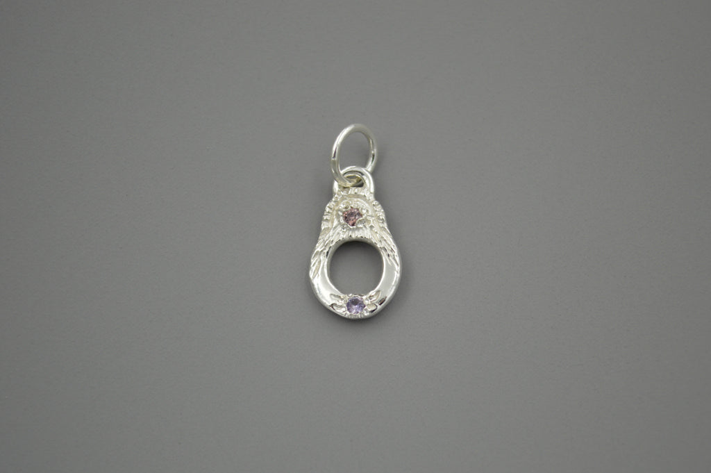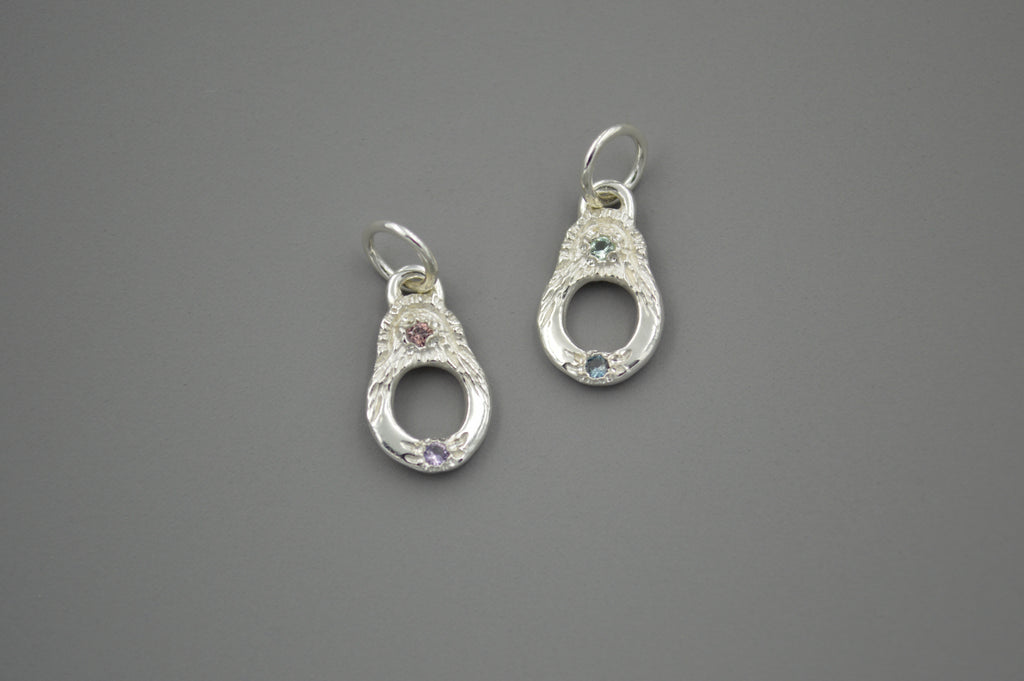 The new Light in the Dark charm. This design was made years ago but has been updated with a charm bail that can slip onto most chains. These editions have special stone combinations. This pendant is also available in another listing with made to order stone options.